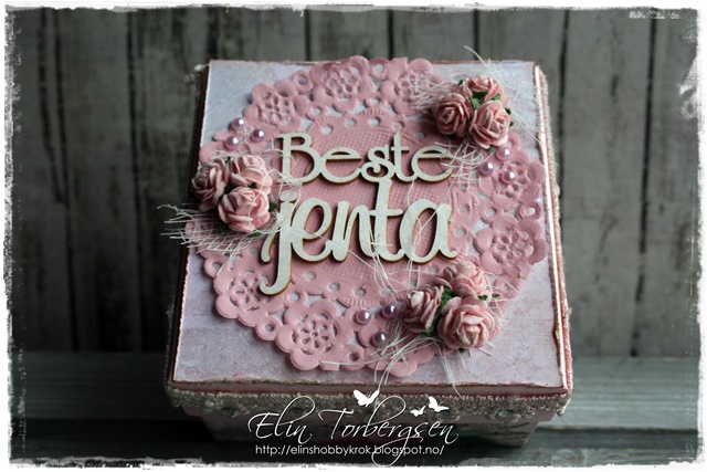 Jeg har her valgt å bruke opp litt stumper av blonder, derfor forskjellige på hver etasje. Jeg har brukt hampebånd utenpå, både for å få en "rød tråd" i det hele, men også fordi jeg elsker å blande elementer: Mykt og hardt, naturlig og sart, varmt og kaldt.